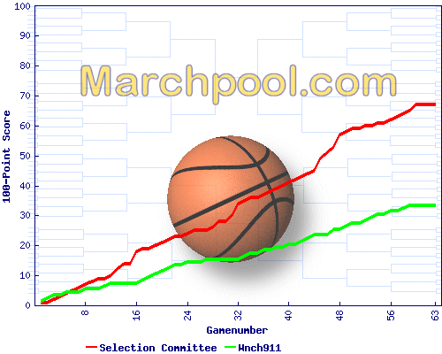 EAST | SOUTH | MIDWEST | WEST | Final 4 | 100 Pt. Score | Seed x Round Pts | Rating | Pred. Winner | ||