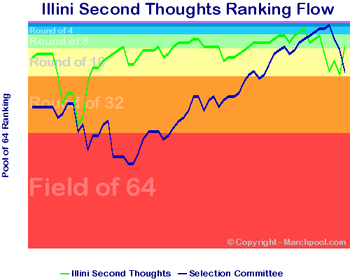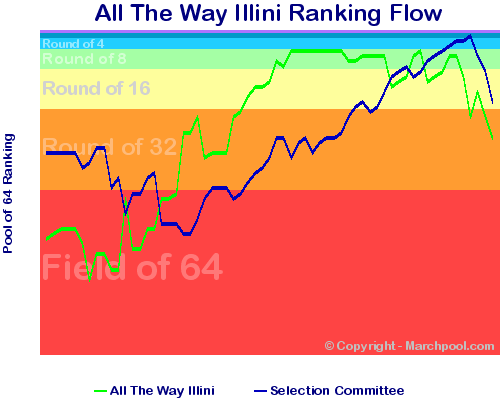 | 149 | Fighting Illini | S | F | R | 19 | 12 | 11 | 11 | 0 | 53 | 195 of 419 | Field of 64 | ![]() |